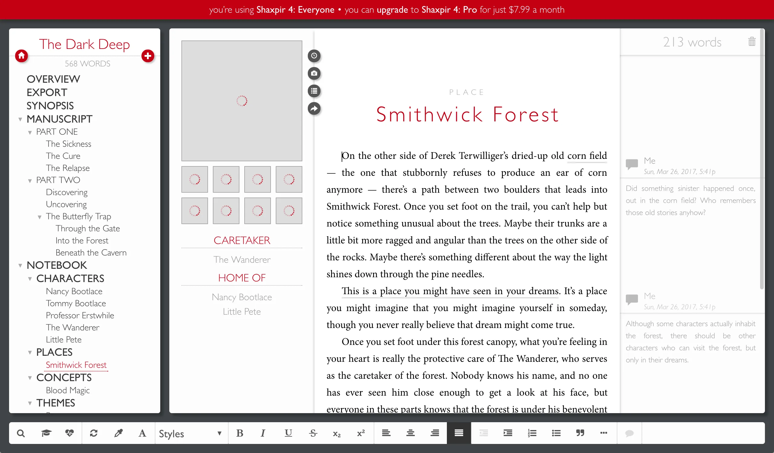 Get started writing your own novel now, with Shaxpir 4: Everyone, our unique writing platform for novelists. It’s completely free, for everyone. Forever.