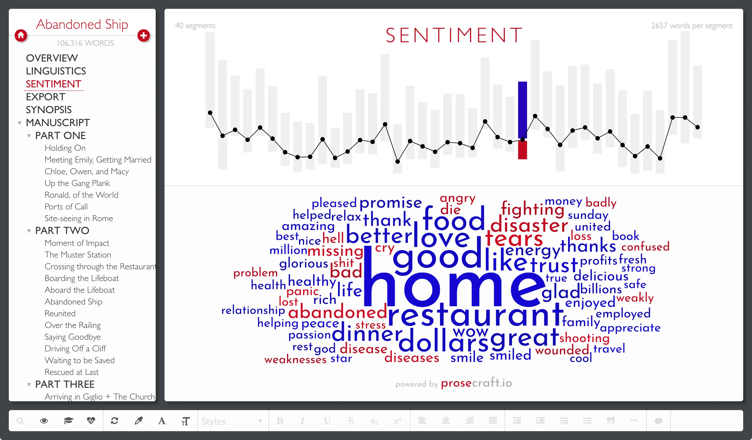 For the first time, this release gives every author the ability to see the Emotional Story Arc of their entire novel, based on a sophisticated sentiment analysis of the positive and negative words in their text.