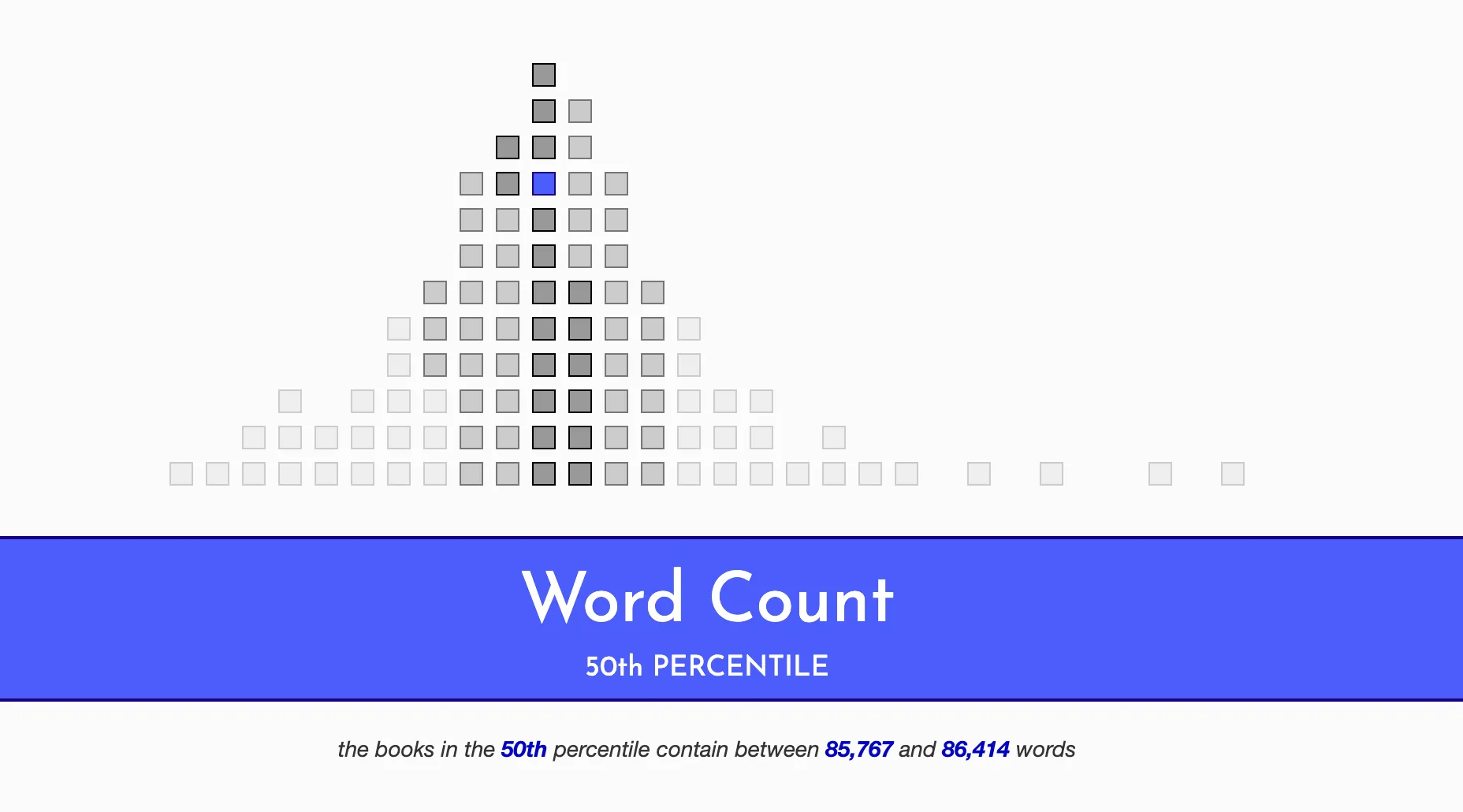 It’s useful to know that a typical book contains about 86,000 words, and that the the top 10% of all books have between 130,000 and 250,000 words.
